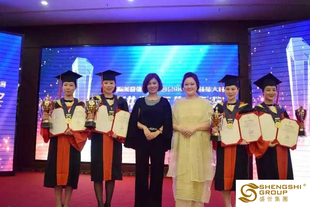 今天,是一個收獲榮譽的日子;從奧林匹克講師杯、到專業技能匠心杯,到第一季度業績戰神杯,盛世榮譽表彰一波接著一波。盛世集團特邀香港美容美發協會會長彭玉玲女士,為此次奧林匹克專業技能大賽獲獎者頒獎,并給予加持勉勵。