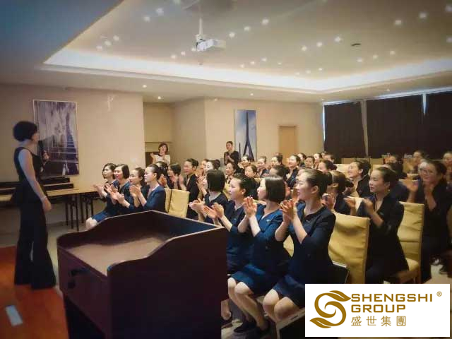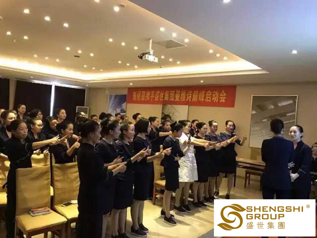 另一個專業培訓場也在火熱進行中,盛世攜手衡陽魅麗嘉【曼雅詩】啟動會精彩呈現。整齊劃一的制服、標準的坐姿、全神貫注的聽課狀態,這個小小的能量場也在醞釀無法預估的能量。