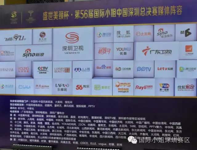 大賽的盛況同時也成為了各大媒體爭相關(guān)注報道的焦點:深圳電視臺娛樂頻道、深圳電視臺財經(jīng)頻道、深圳電視臺都市頻道、深圳電視臺公共頻道、深圳電臺飛揚971、廣東電視臺新聞頻道、廣東電視臺綜藝頻道、深圳特區(qū)報、深圳都市報、晶報、深圳晚報、深圳商報、南方都市報、網(wǎng)易、新浪、搜狐、騰訊、雅虎、鳳凰網(wǎng)等大型門戶網(wǎng)站、《醫(yī)學美學美容》雜志、《鳳凰生活》雜志社、《奢華美容》、138傳媒等,可謂陣勢強大。