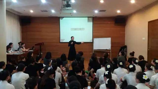 正在為寶貝們講解頸部知識的姚總,寶貝們積極互動,課堂氛圍十分融洽